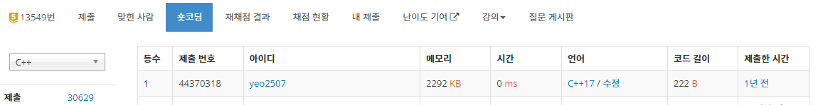 코드가 짧다고 다 좋은 건 아니지만 숏코딩 1등!